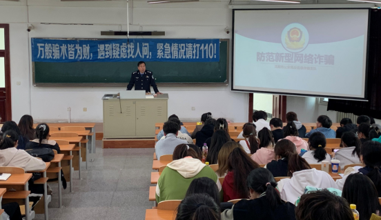 为进一步提高学生的网络电信新型诈骗识别和防范能力,维护同学们的切身利益,预防各类网络电信诈骗事件,营造和谐平安的校园环境。3月31日,星空XK官网、学校保卫处联合举办“防范新型网络诈骗”主题讲座,我校所辖当地派出所代长岭所长担任主讲嘉宾,我院200余学生参加讲座。