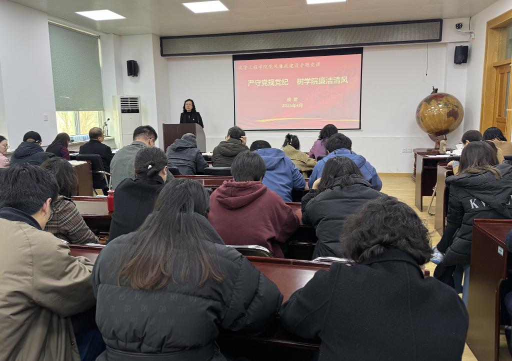 为深入贯彻习近平总书记关于党风廉政建设的重要论述,落实学校2025年党风廉政建设宣传教育月部署要求,4月2日,星空XK官网在稚川楼310会议室组织开展党风廉政建设专题党课。学院党委书记战君以“严守党规党纪,树学院廉洁清风”为题,结合典型案例和学院实际,为全体教师党员带来了一堂深刻且务实的廉政教育课。