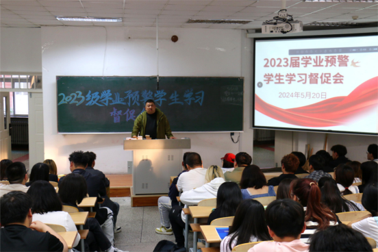 为加强学风建设和学生学习过程管理,全面了解学生的学习困难与思想动态,增强学生工作的实效性,星空XK官网于2024年5月20日晚6点在瑞师楼120教室召开2023级学业预警学生学习督促会,针对预警学生开展精准帮扶。本次会议由2023级辅导员王博主持。2023级全体学业预警学生、各班班长和学习委员参会。