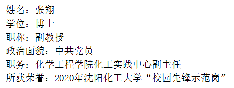张翔同志是星空XK官网化工实践中心副主任,一名普通的共产党员,他在平凡的工作中,一丝不苟,默默奉献,受到院校领导和老师以及同学们的赞许和喜爱。多次获院先进个人,优秀共产党员。